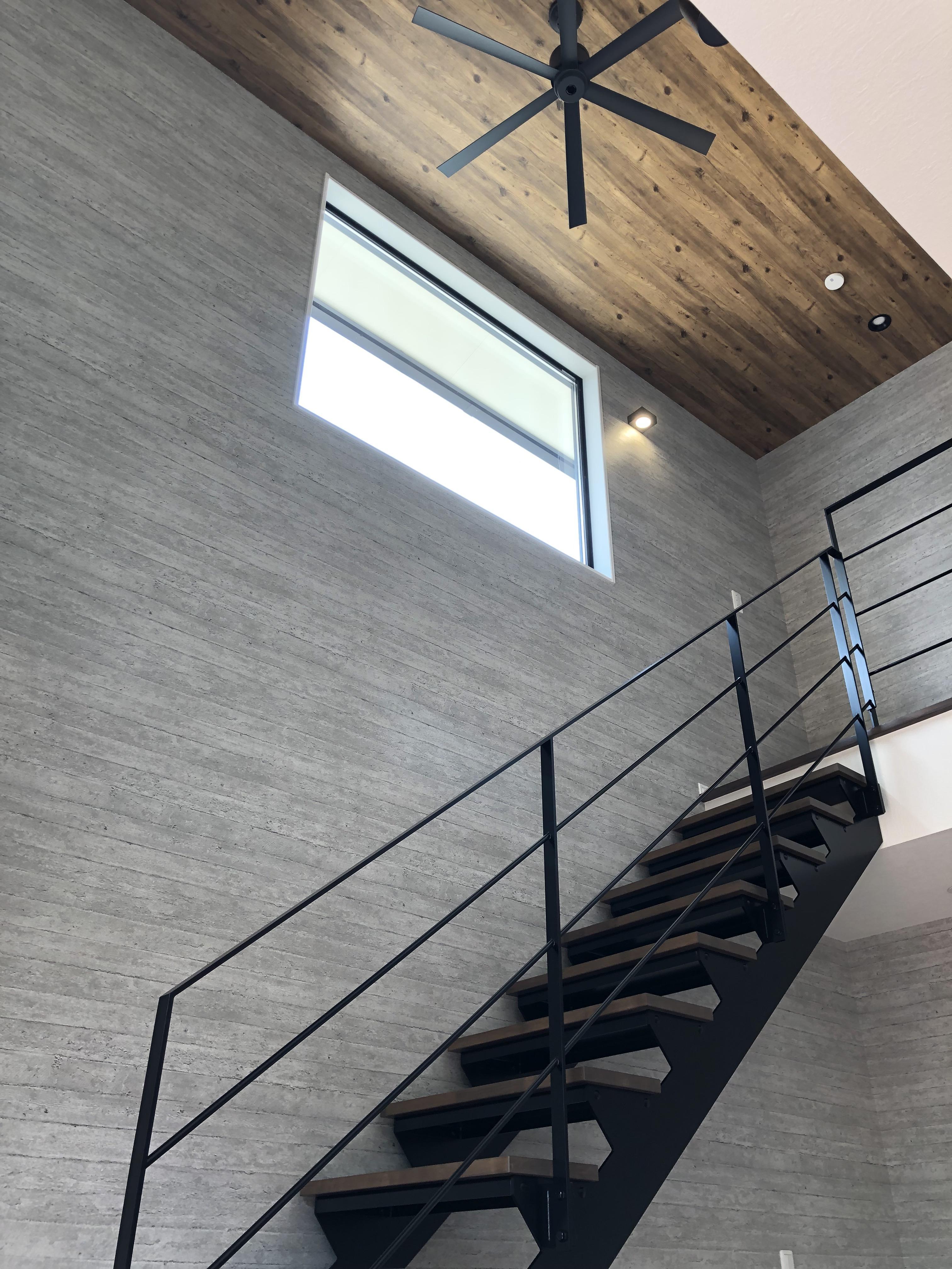 南側に設けた鉄骨階段、本当に素敵で、FIX窓が絵画のように見えるんです!