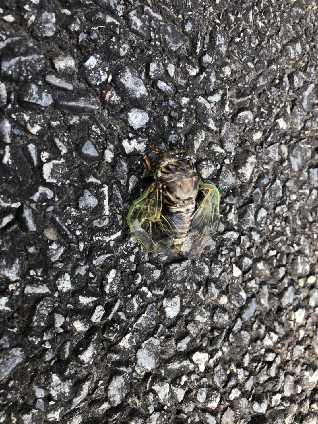 セミだ!羽がみずみずしい。孵化したばかりでしょうか?