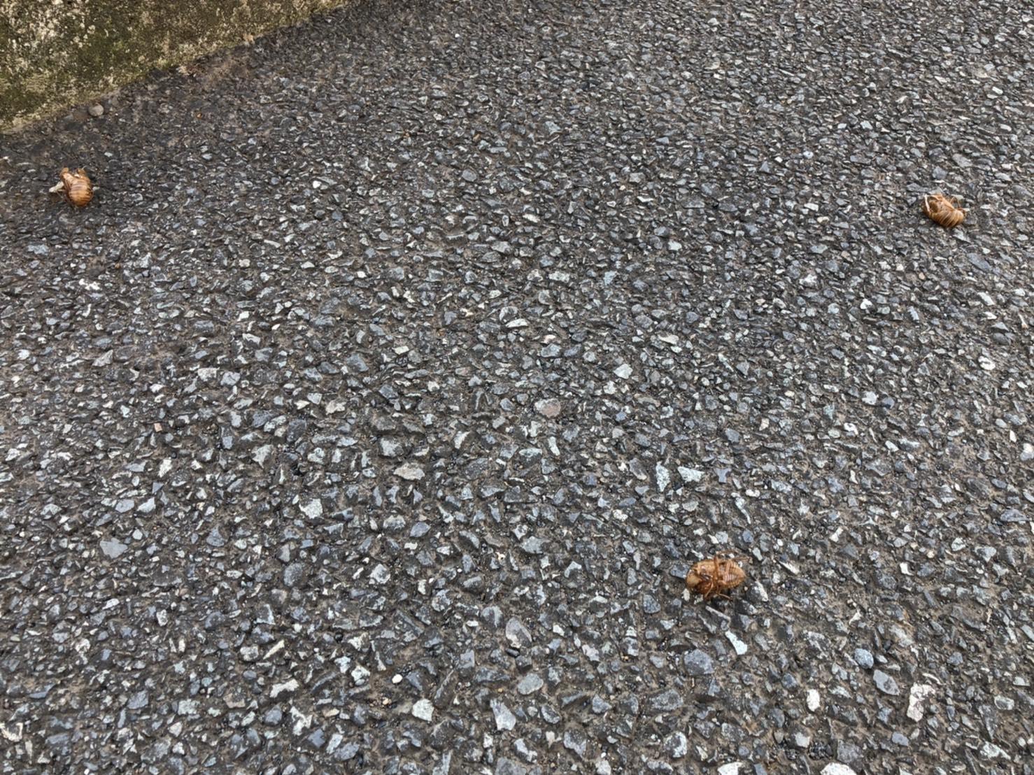 今朝の散歩での事ですが、近くの小学校の前でセミの抜け殻が多数落ちていました。