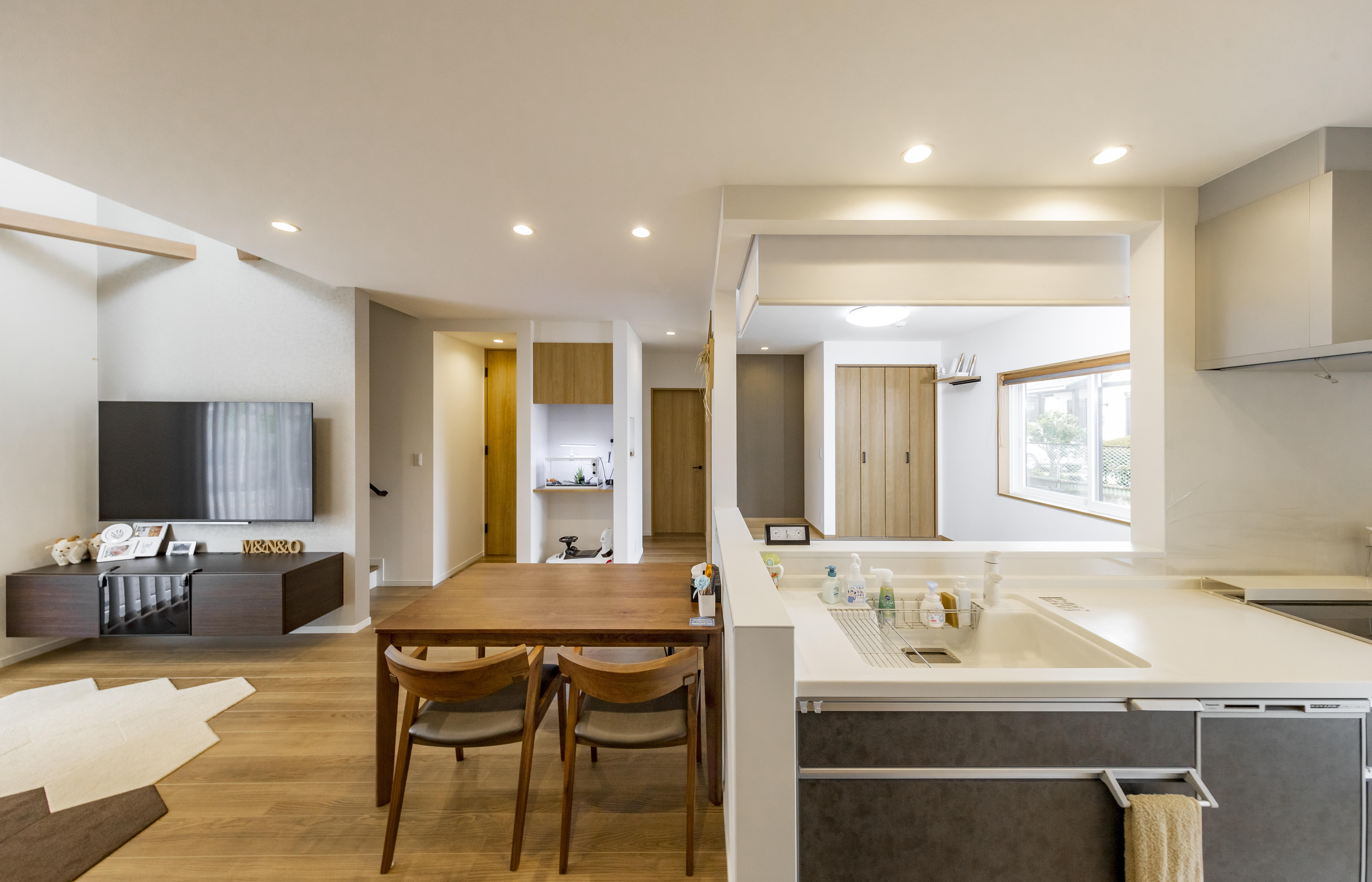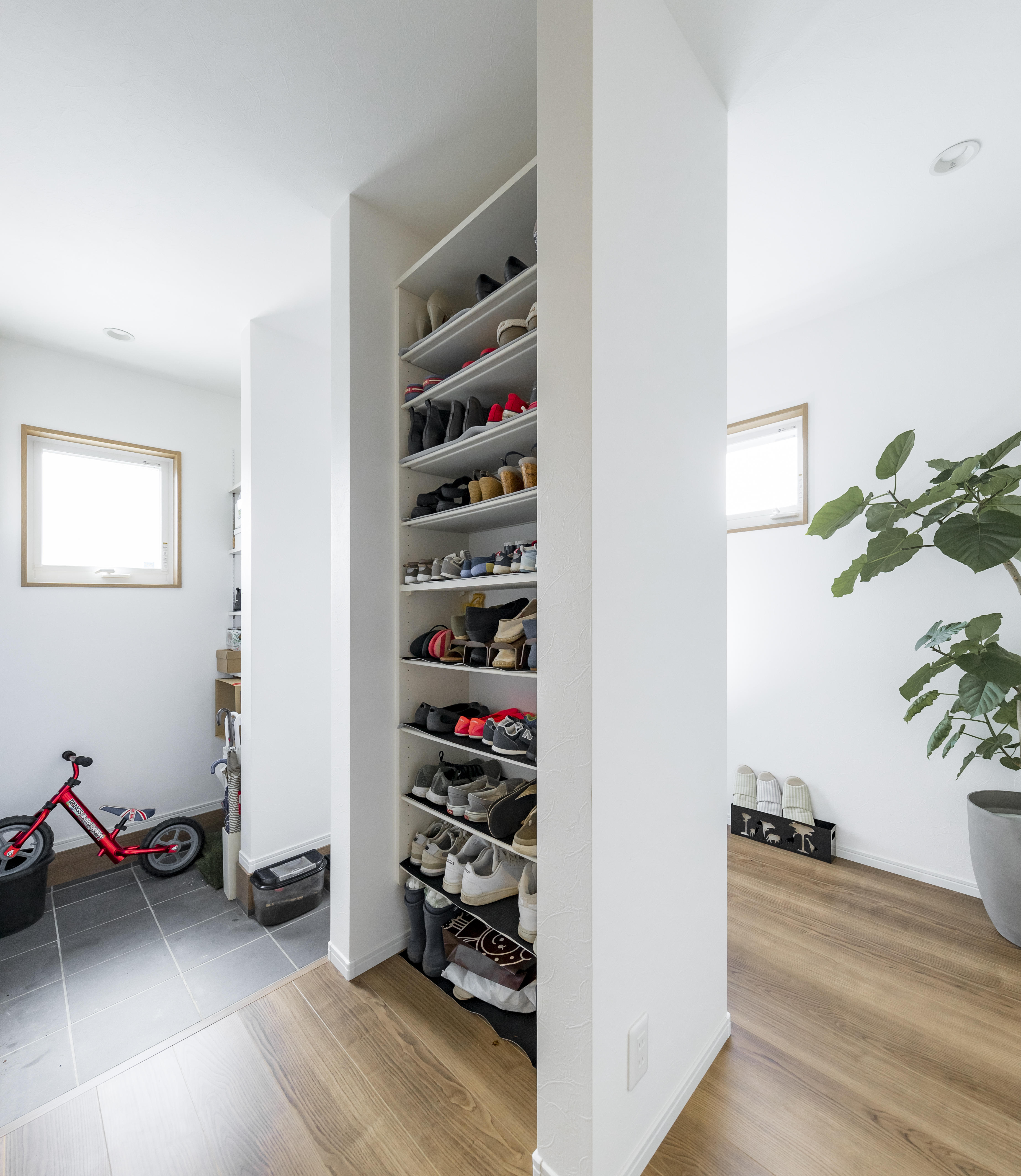 生活動線に収納計画を組み込みました 通過しながら片づけられる収納がとっても便利です。