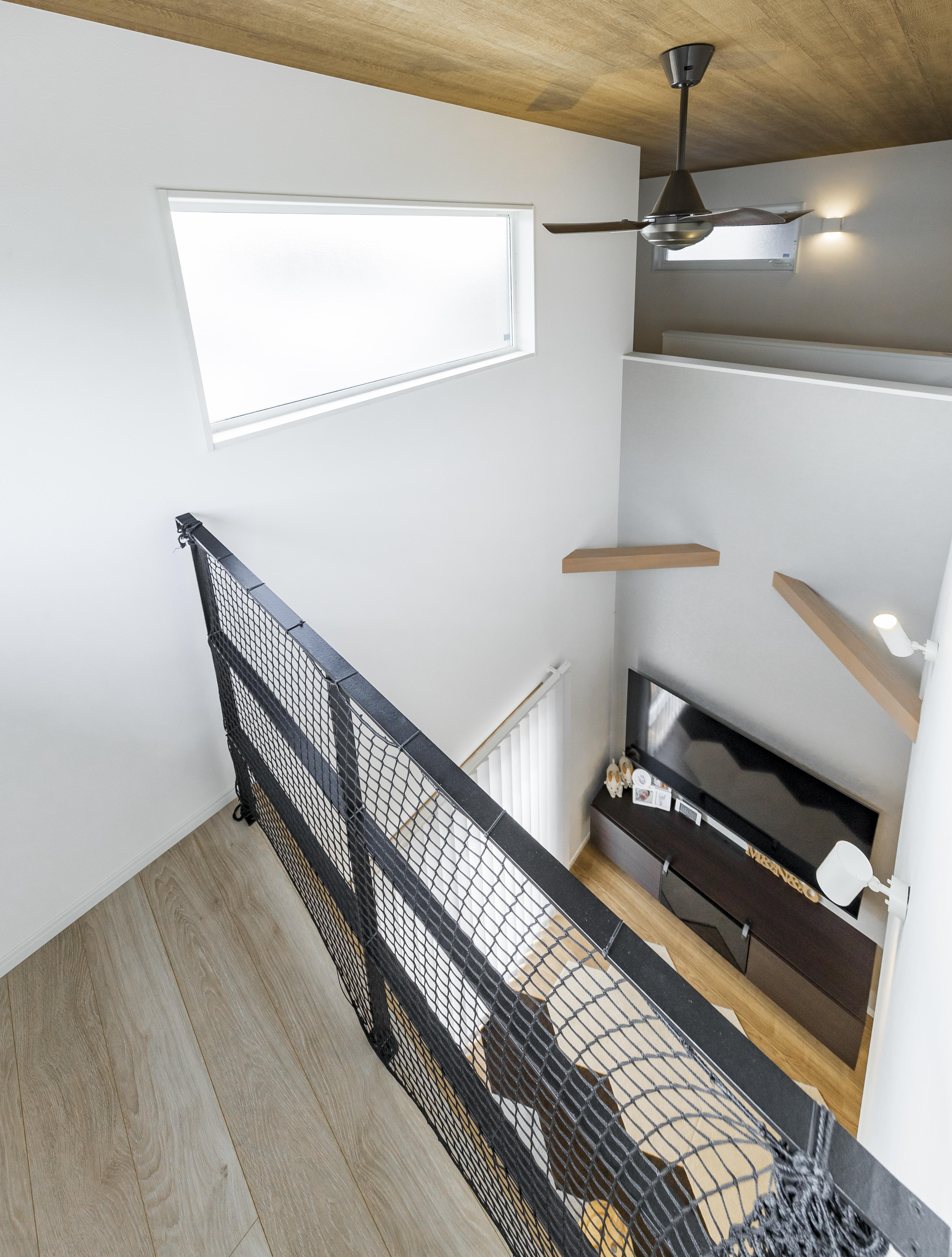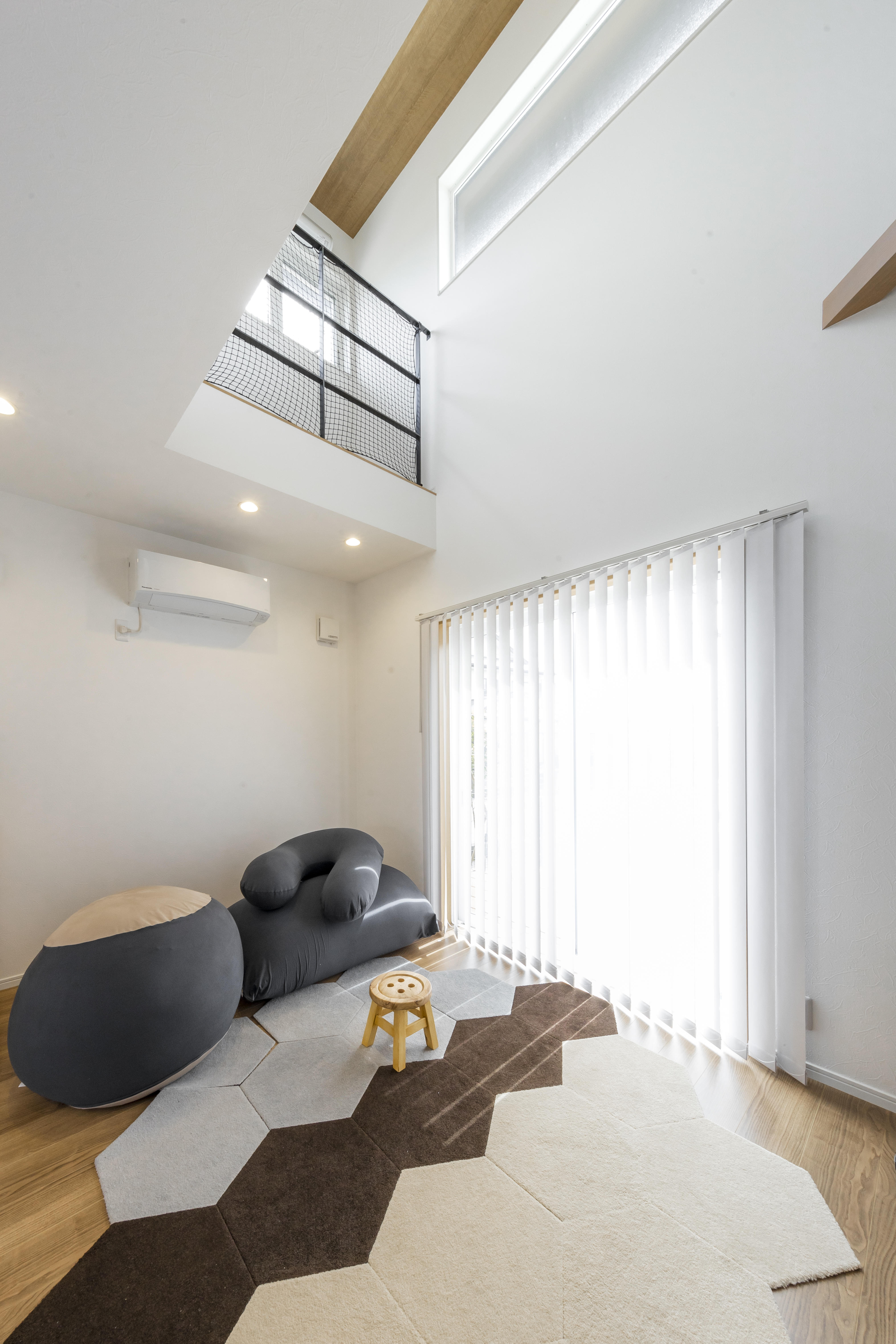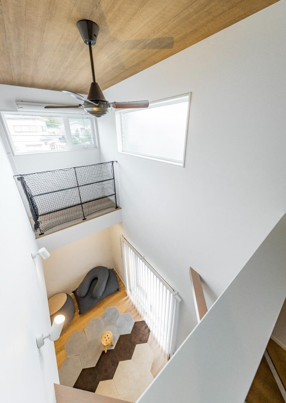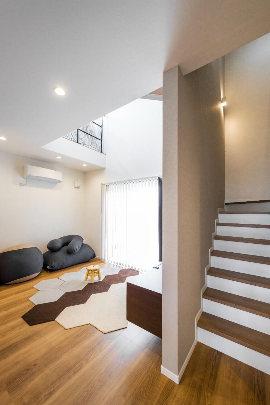 吹き抜けのハイサイドライトから1階のリビングにヒカリと風を届け、快適な空間となっています。