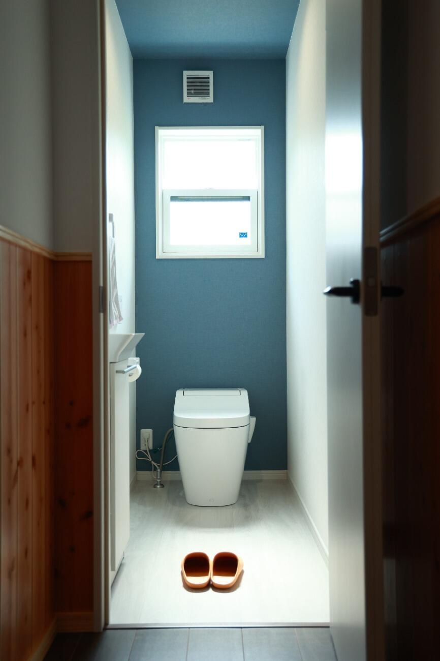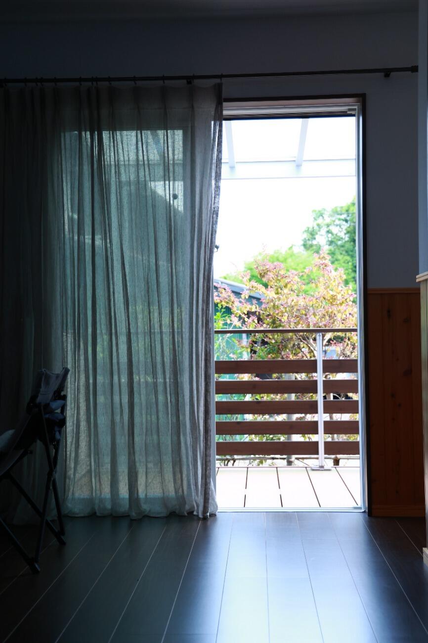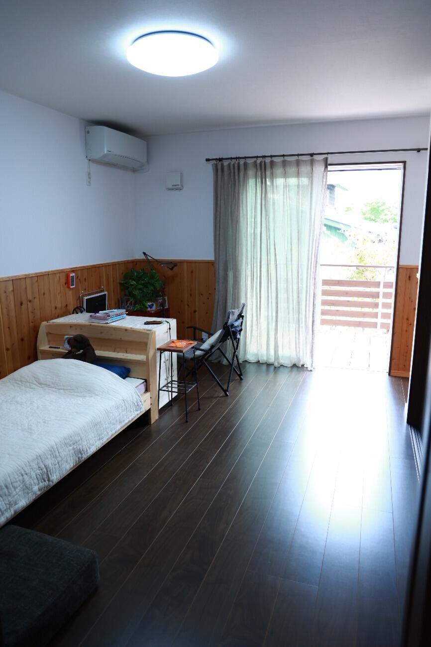 ヒノキ腰壁とホタテペイントでつくられたリビング。腰壁は壁の汚れやキズ防止になり、デザイン性もあります。ホタテペイントは人に優しく安全な壁材の上、消臭効果に加え、吸放湿性に優れ、快適に過ごすことができます。
