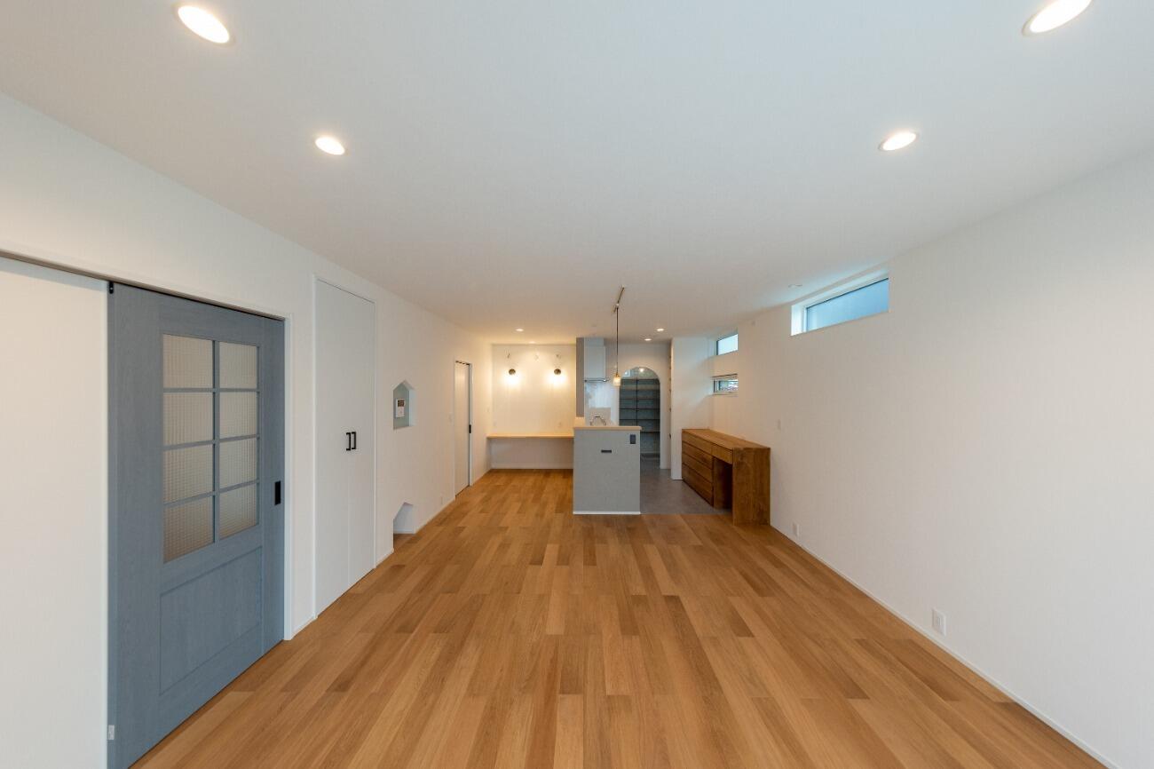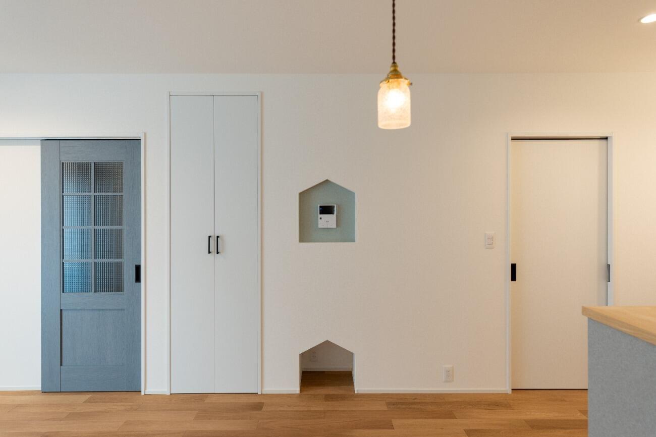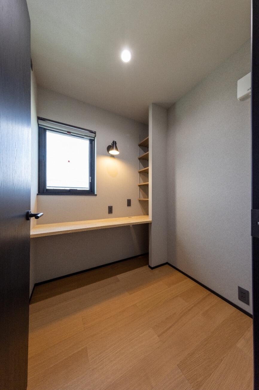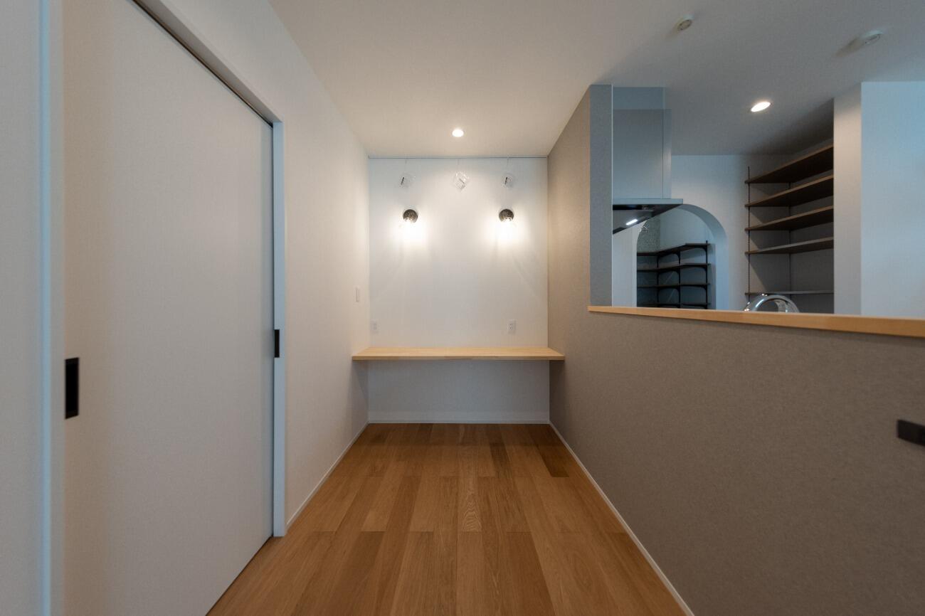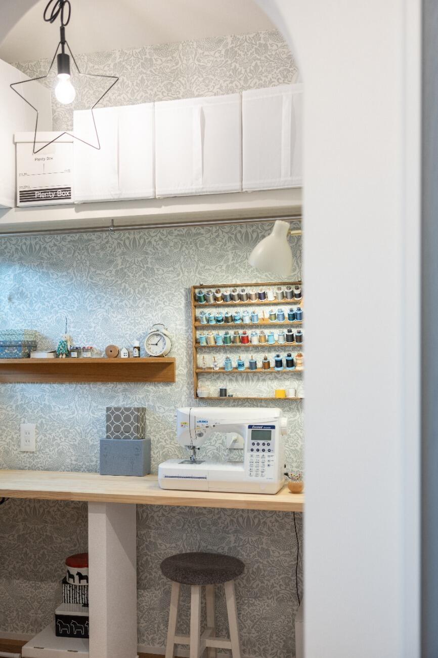 リビングの一角にママの趣味スペースを設けました。こもって集中作業することもでき、リビングからの家族の声も聞こえ、ママもお子様も安心して過ごせる距離感です。