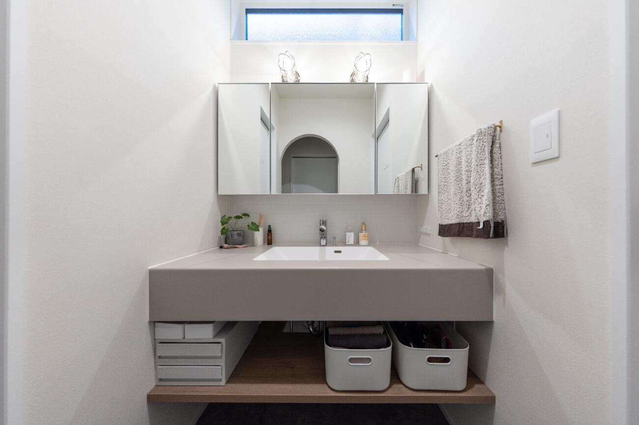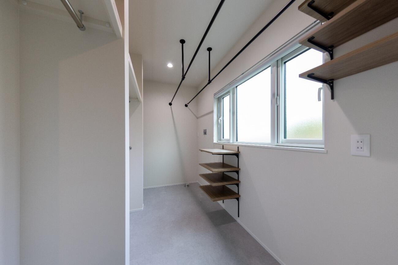 キッチン➩パントリー➩ランドリールーム➩洗面脱衣室と家事を行う部屋を近くにまとめた間取り。重たい洗濯物を運ぶ距離は短く、干すスペースもバッチリ確保されています。