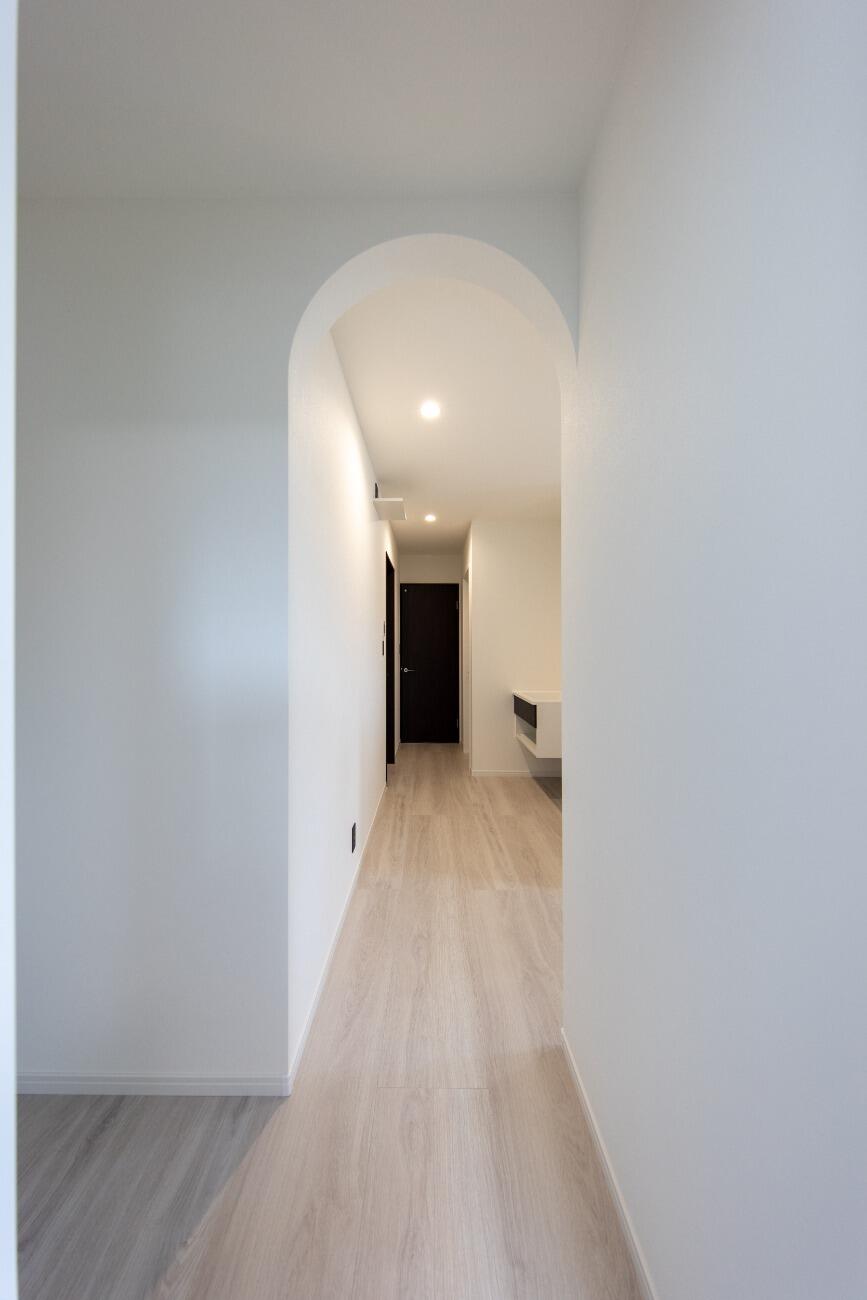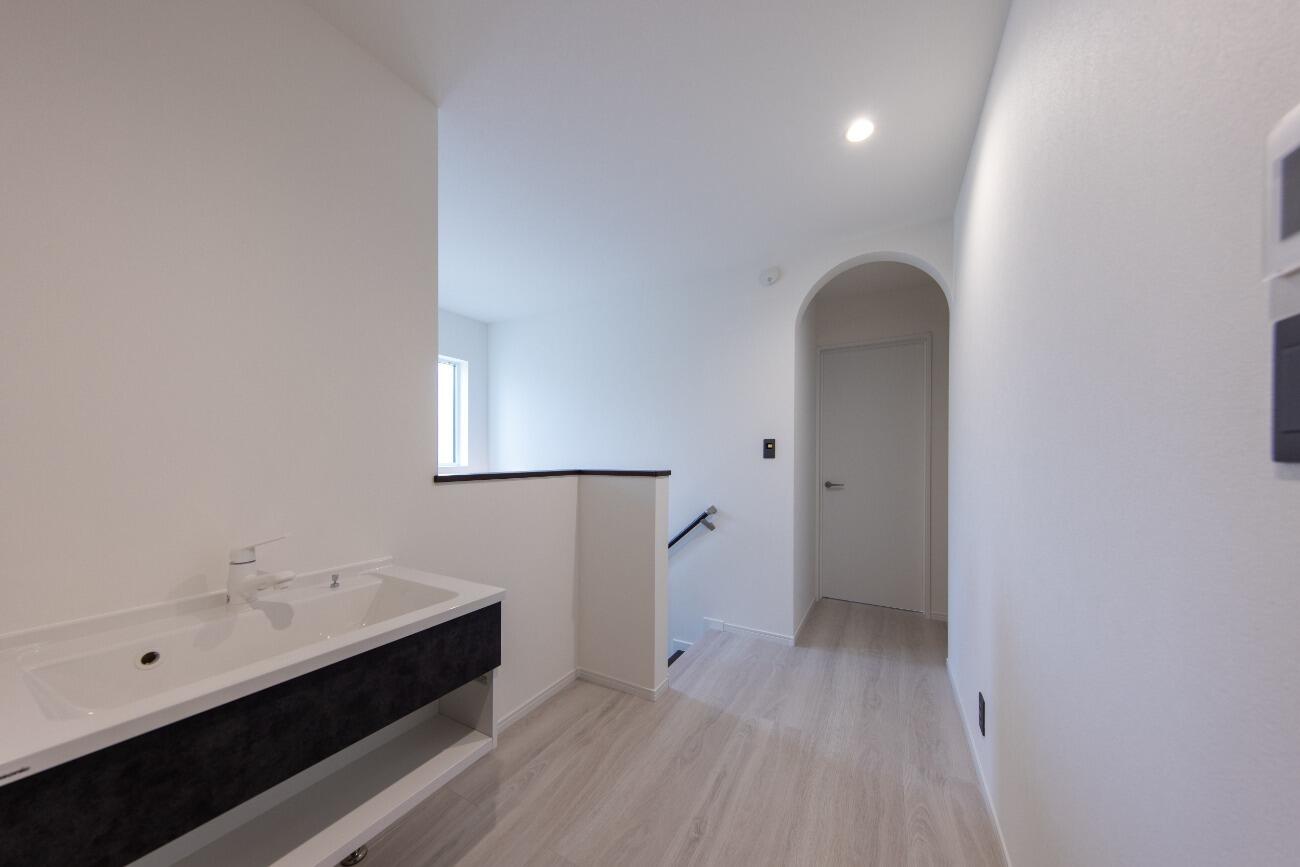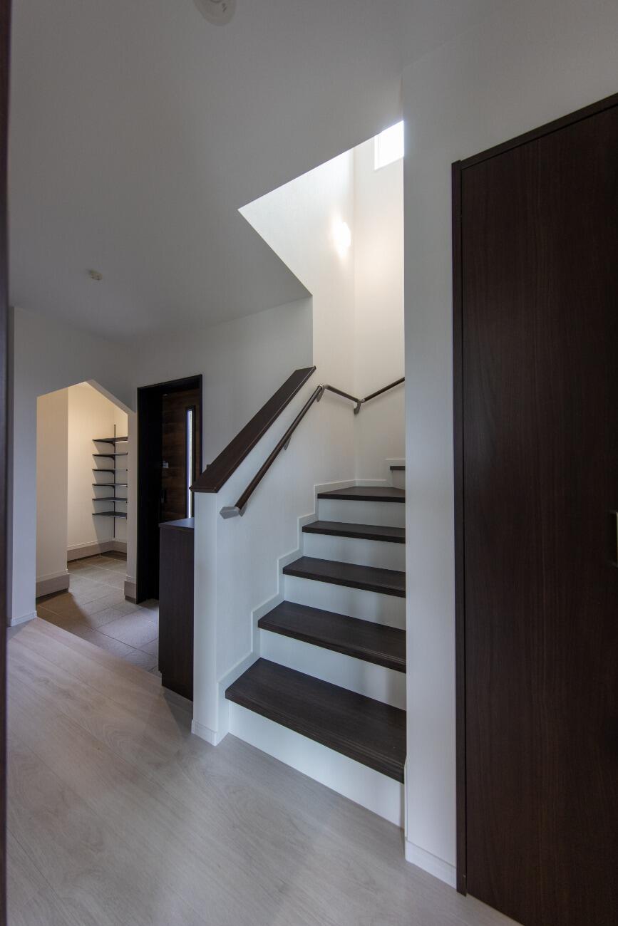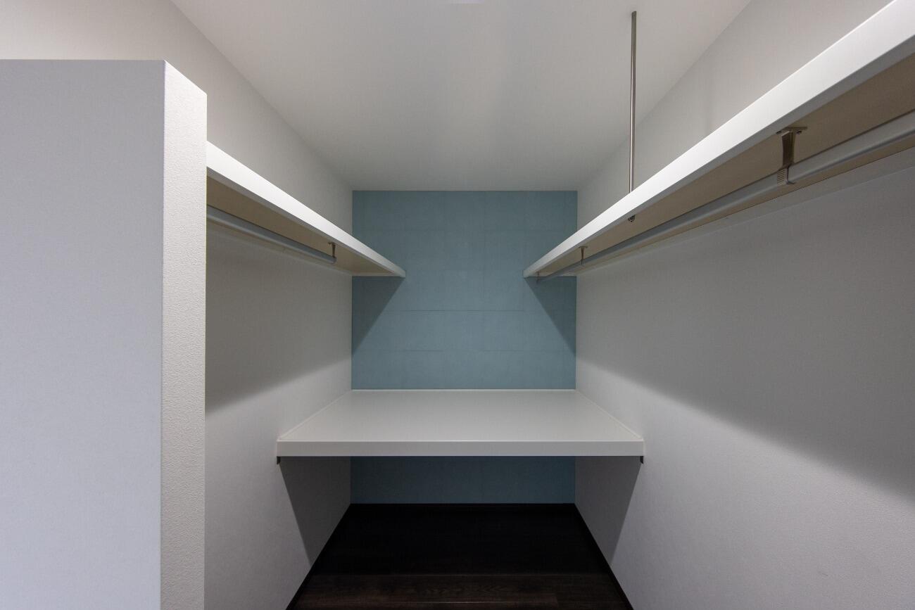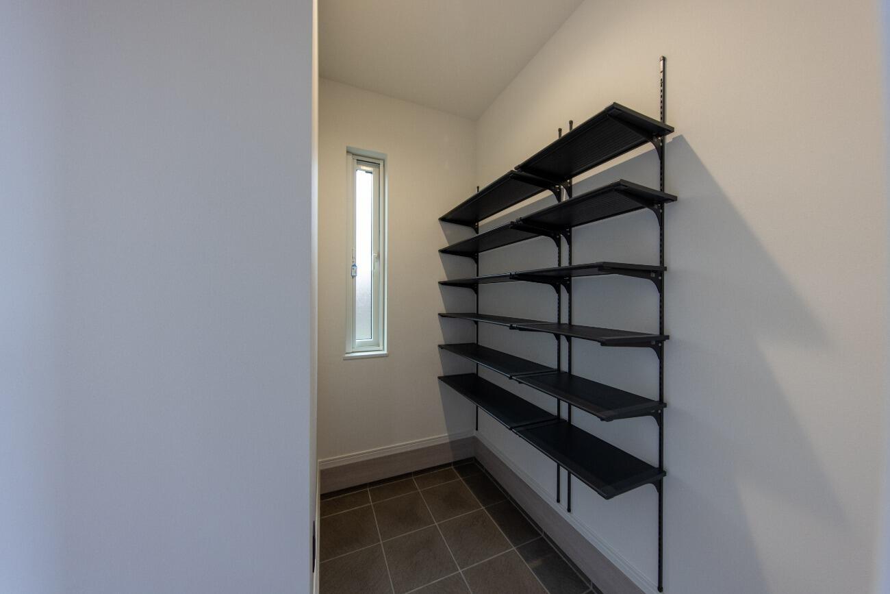 玄関のちょっぴり奥の目立たないスペースには土間ペースを設けました。壁面には靴用の可動棚を設置し、いろんな靴に対応可能なシューズクロークにもなります。
