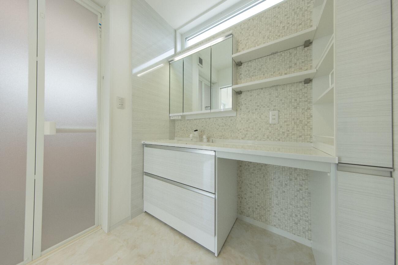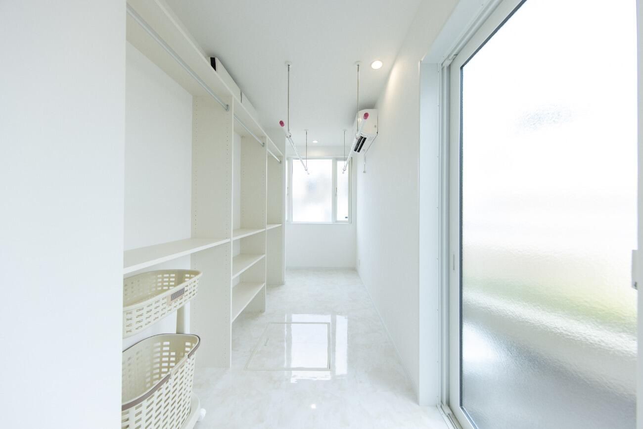 リビングも近く、ウォークスルー可能なランドリールームを配置。家事動線も楽な上、たくさんの収納も設置され、使い勝手も抜群です。