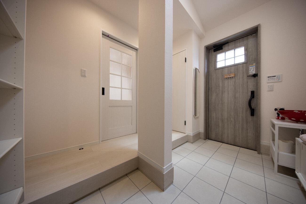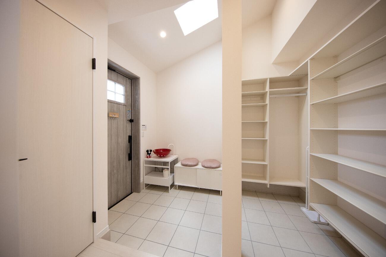 明るく広々とした玄関。 靴だけでなくたくさんの収納が可能。ちょこっとしたベンチで気軽に休憩もでき、機能的な空間に。