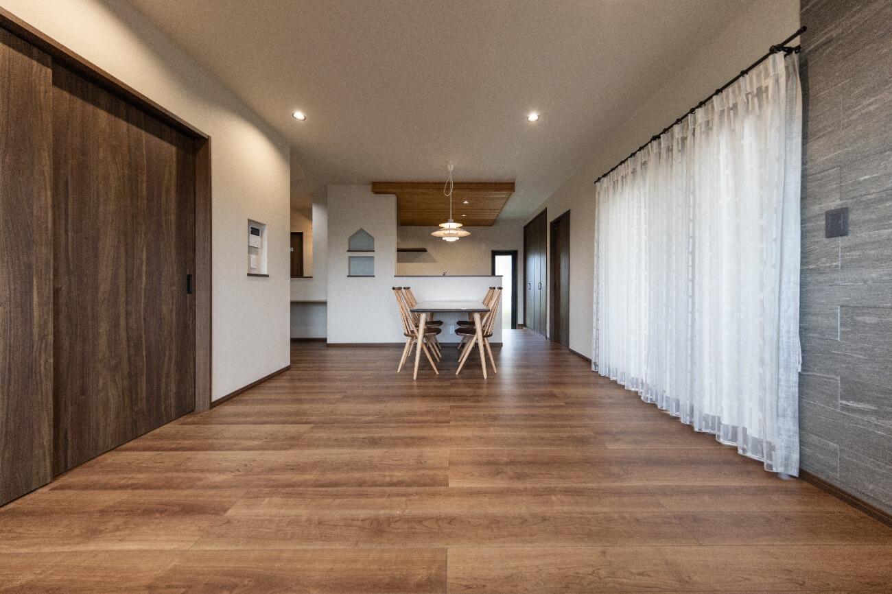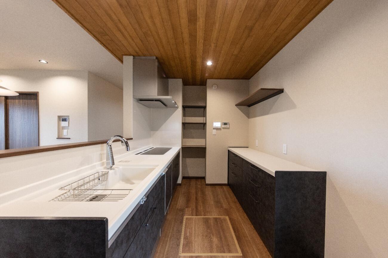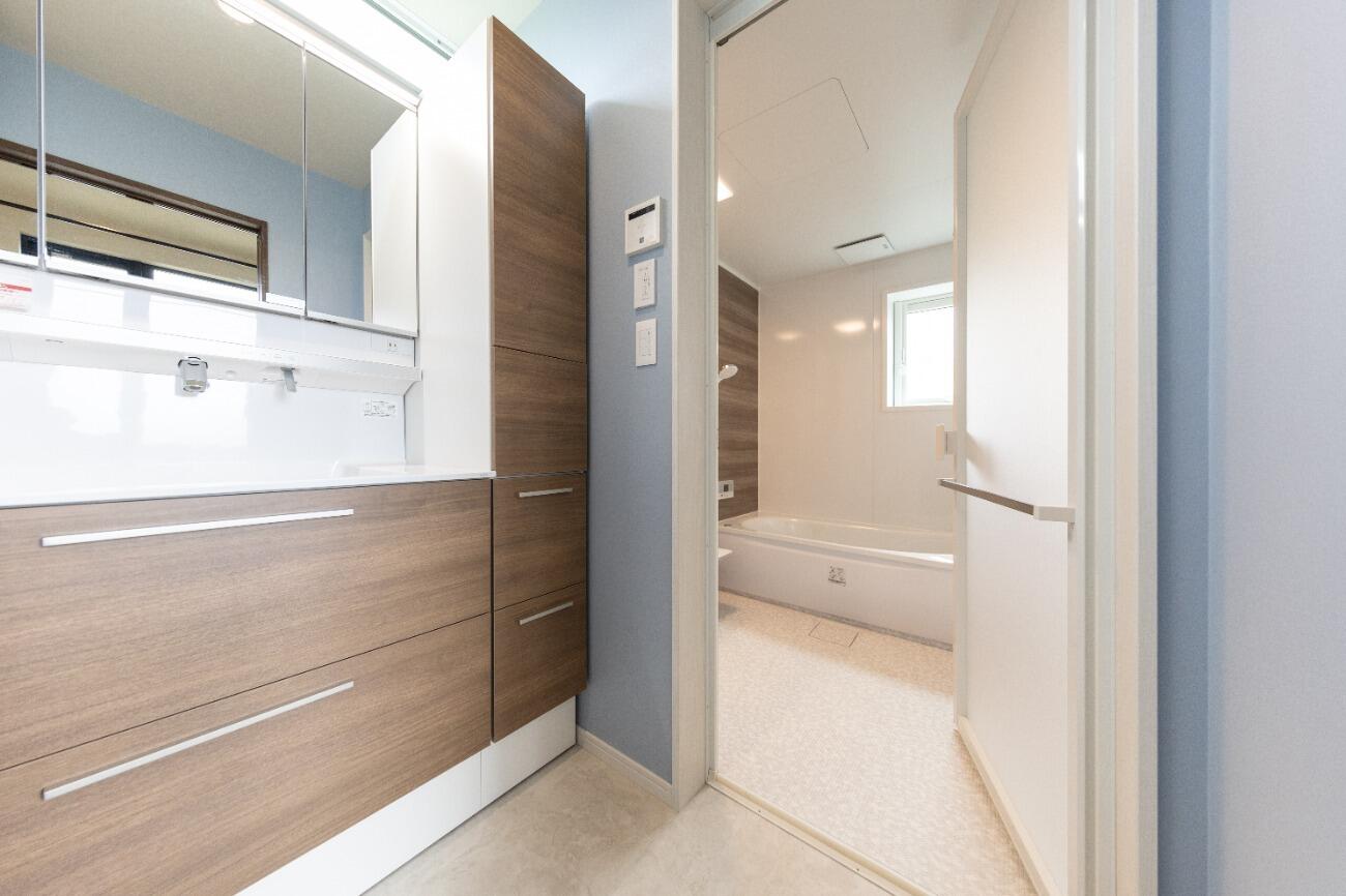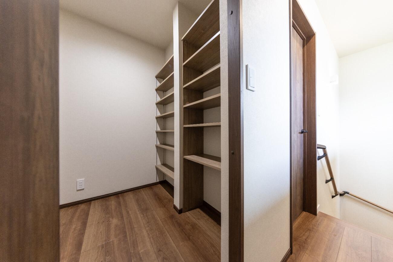 こちらもまたリビングと接するところに位置するランドリールーム。洗濯機を回して、干して片づける。一通りの作業が行える空間。共働きご夫婦には欠かせないスペースです。