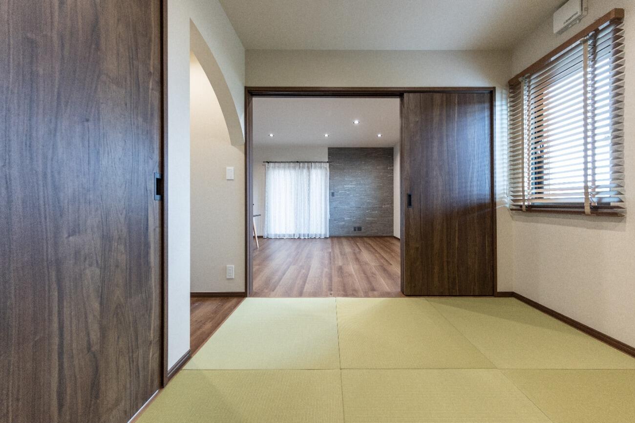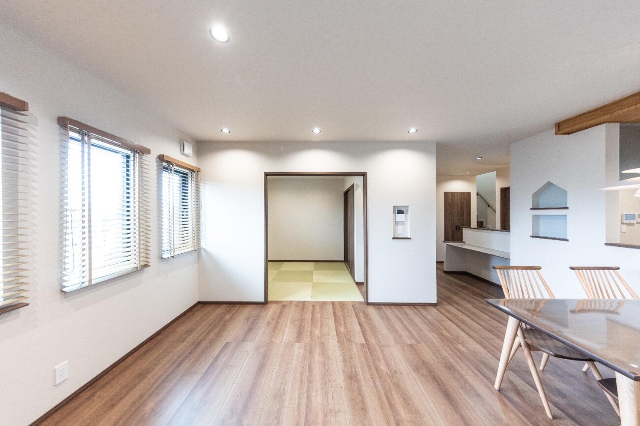 リビング続きの和室は家事コーナーにもくつろぎスペースとしても。スタディコーナーもリビングに接しており、お子様の勉強も見守りもできるつくりとなっております。
