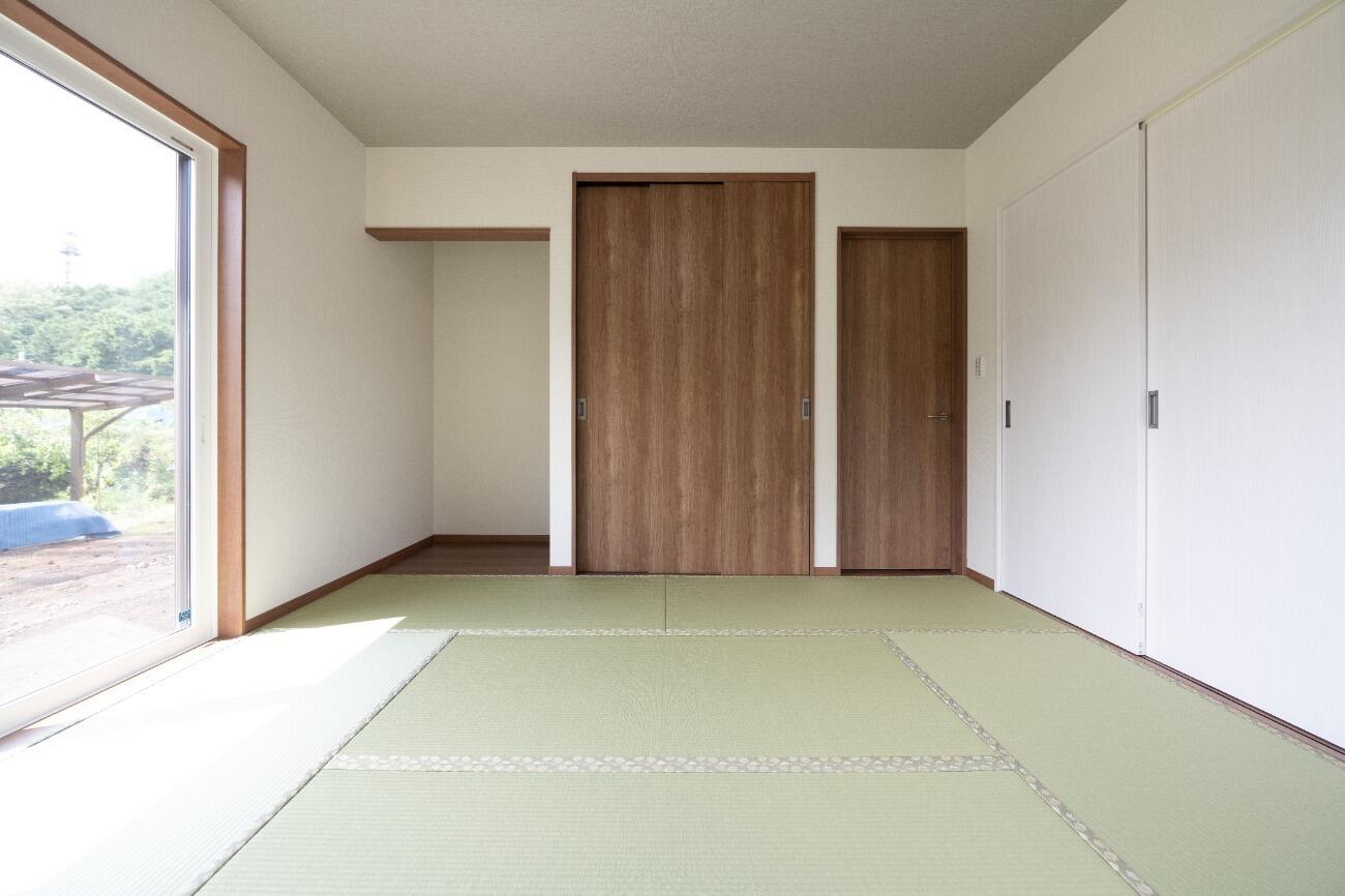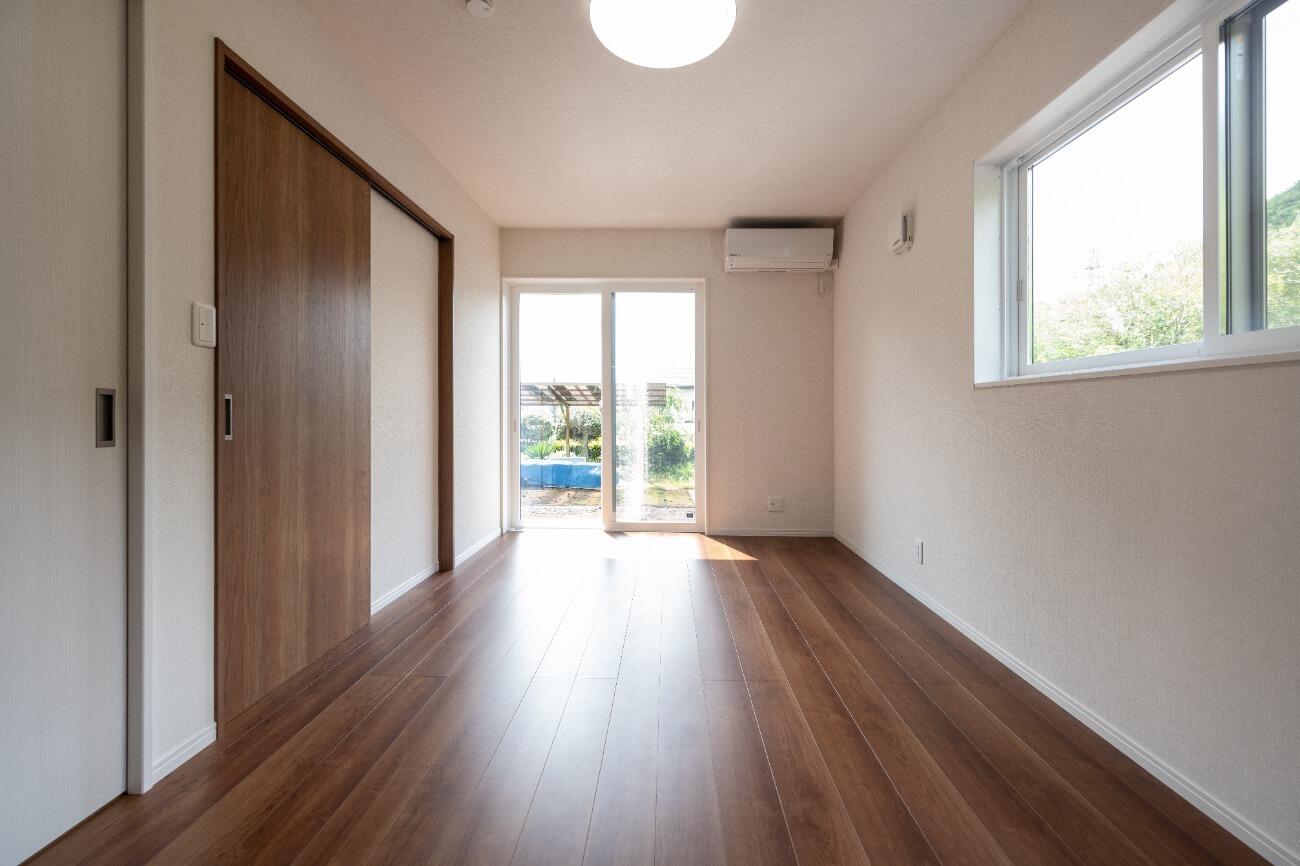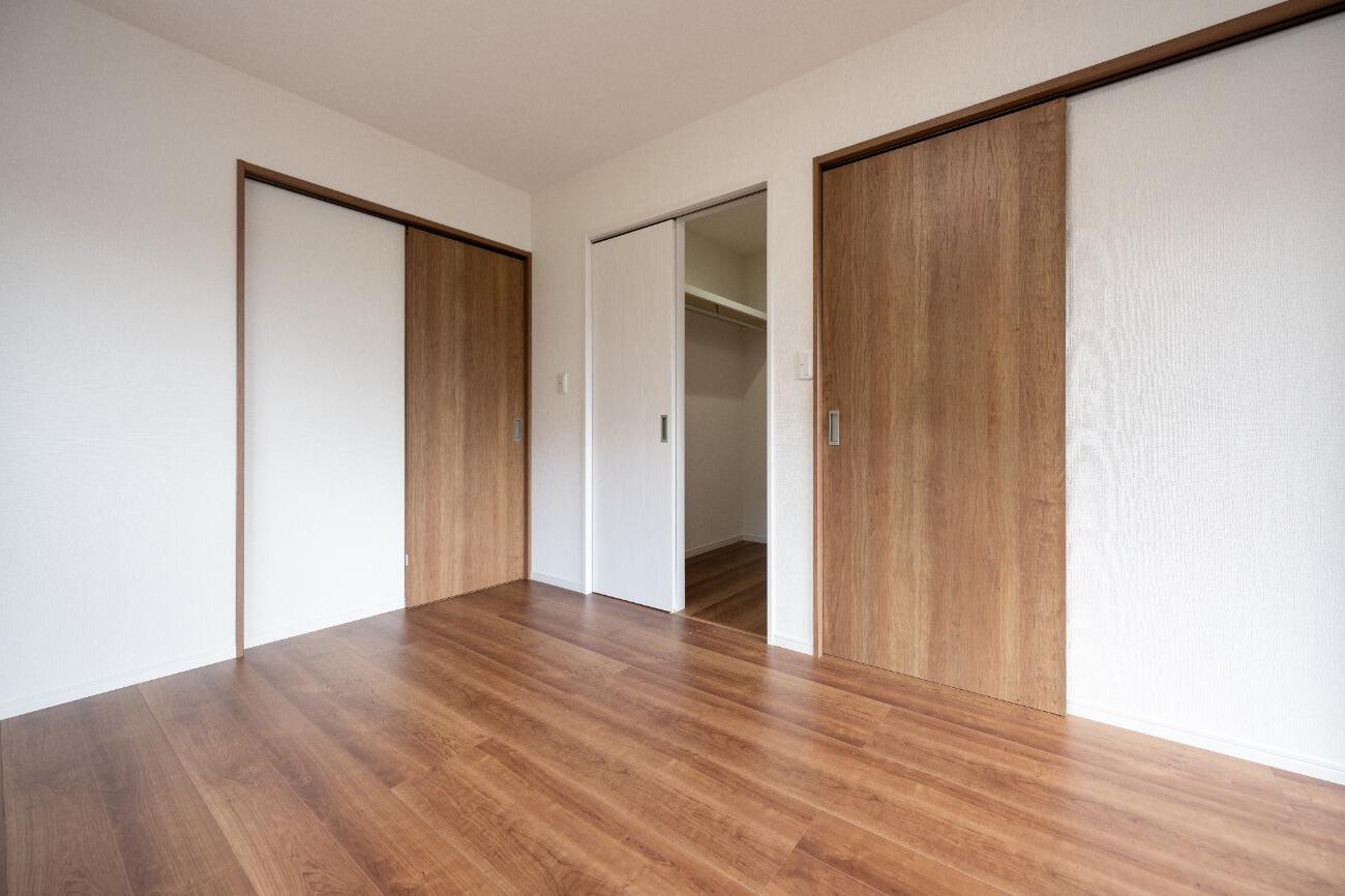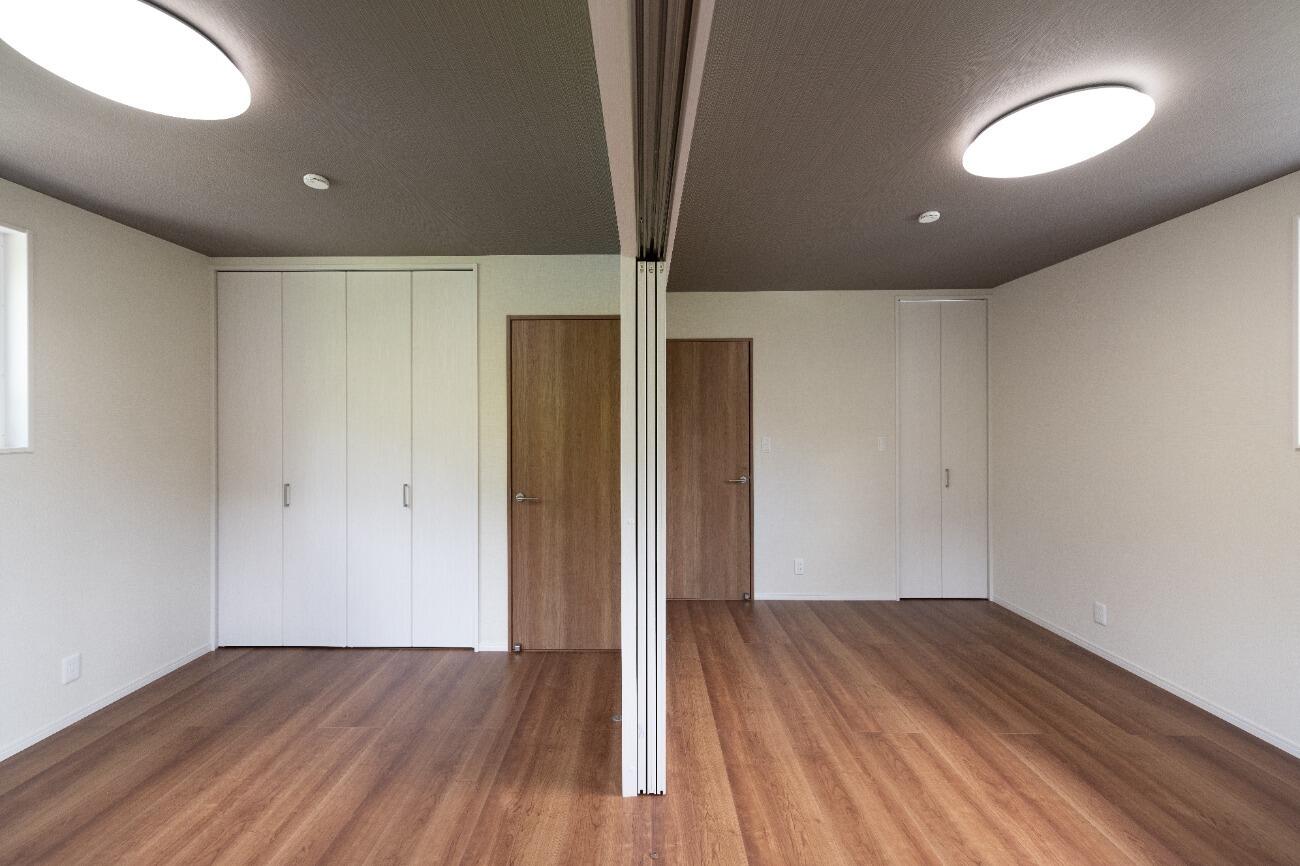 三枚引き戸で一つの洋室を二つに分けて使用することも可能。 普段は広々使い、来客時には扉を閉めて利用すれば客間にもなります。