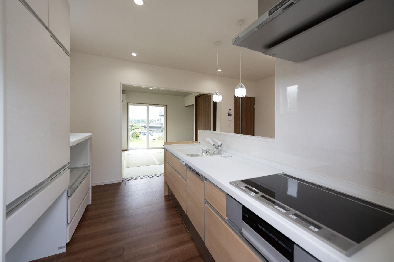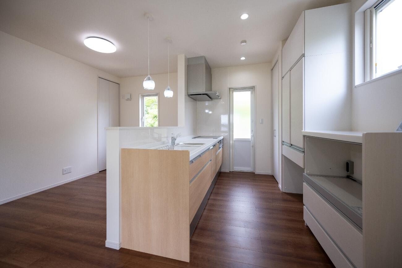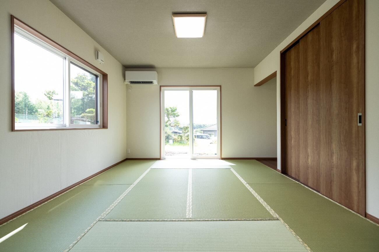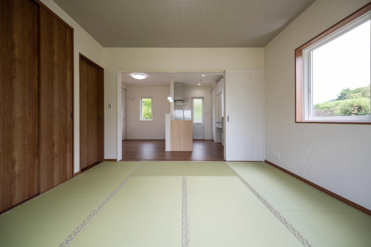 三枚引き戸で一つの洋室を二つに分けて使用することも可能。 普段は広々使い、来客時には扉を閉めて利用すれば客間にもなります。