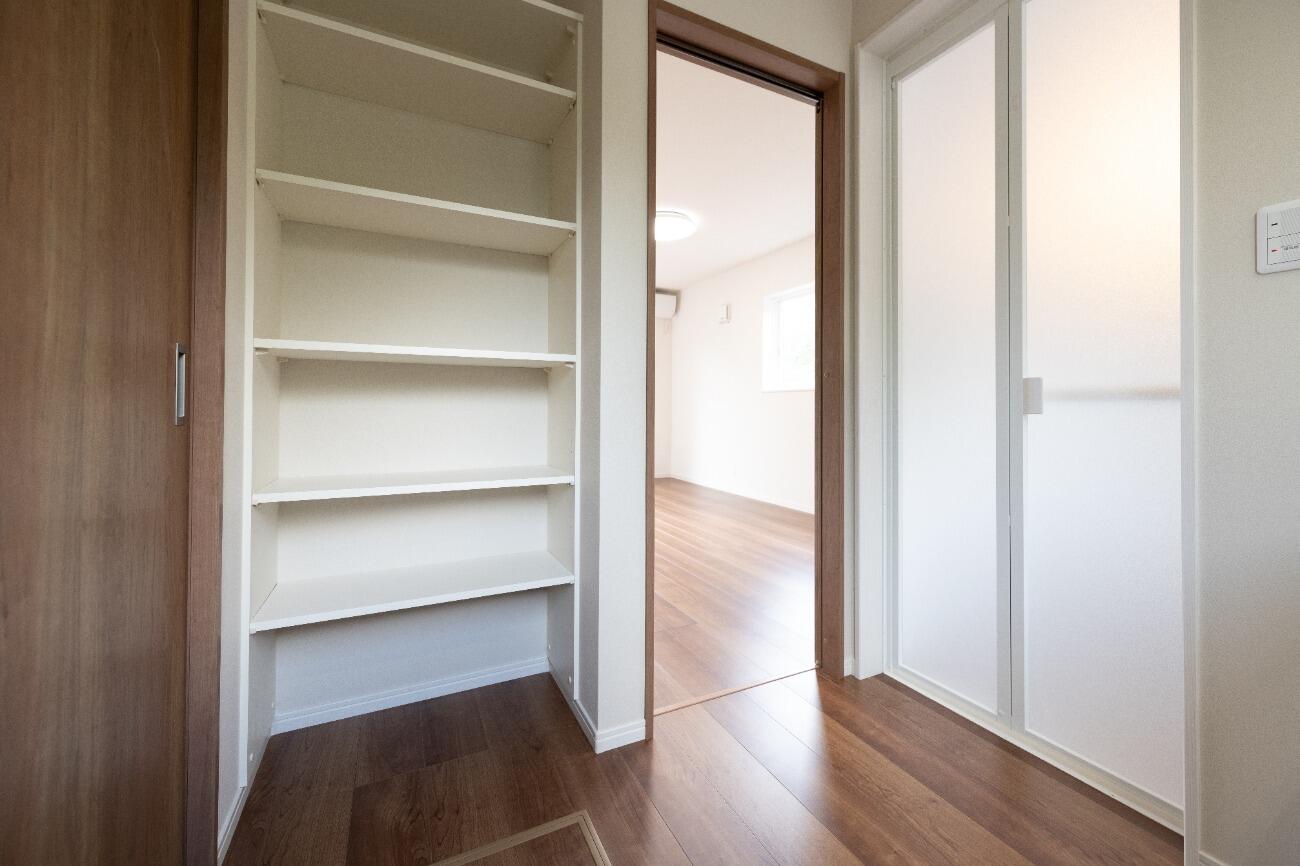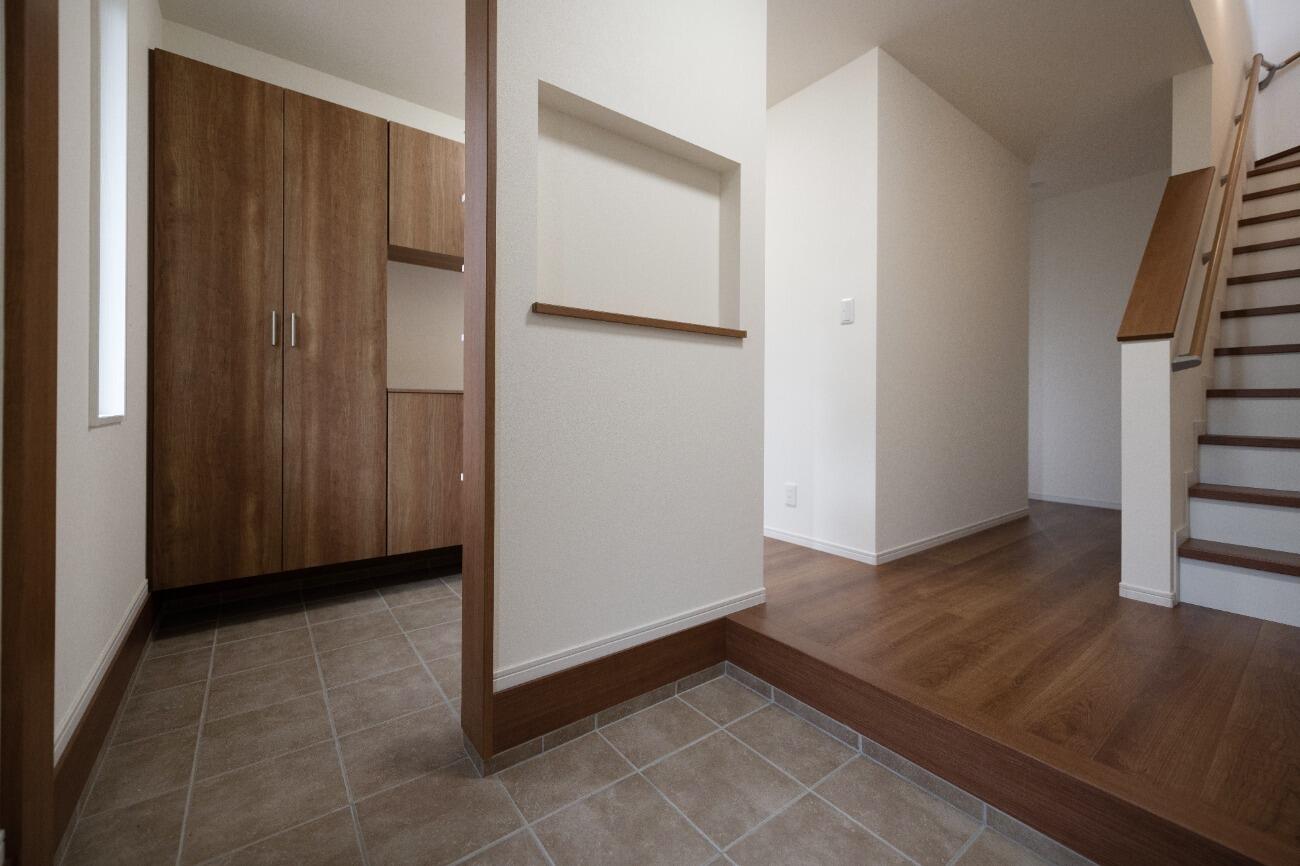 お客様用玄関とプライベート玄関を分けた間取りに。お客様用玄関はいつもきれいに保つことができます。