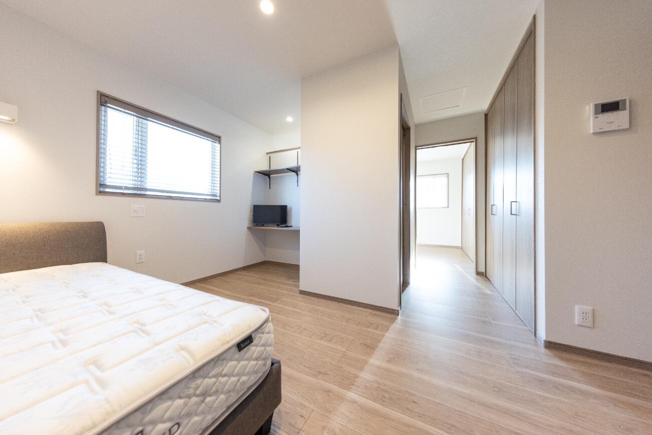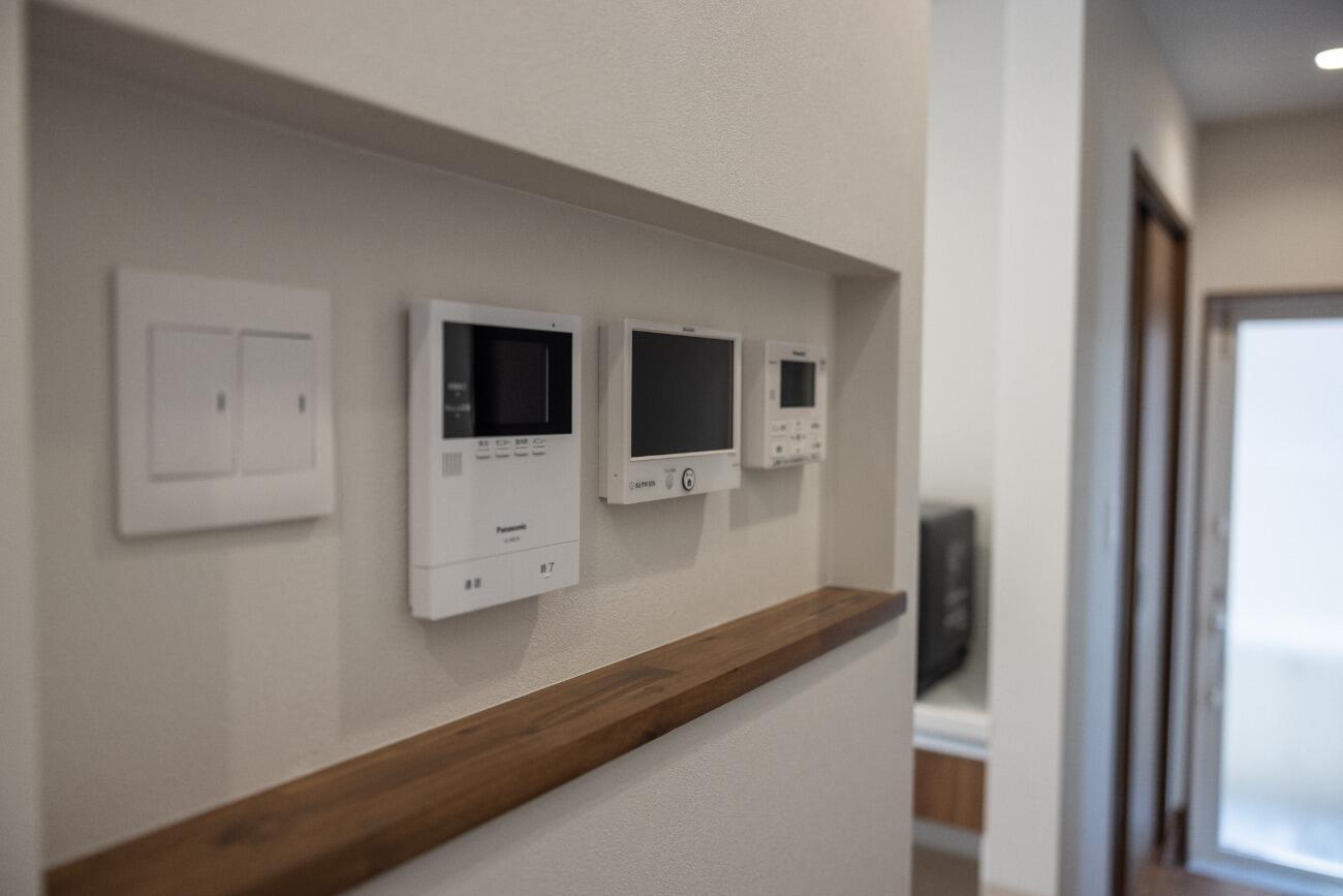 キッチンを起点にぐるぐると回遊できる家事ラク動線。ニッチに設置したコントロールパネルで、玄関扉や駐車場ゲートを室内にいながら自動解錠できるので便利です。