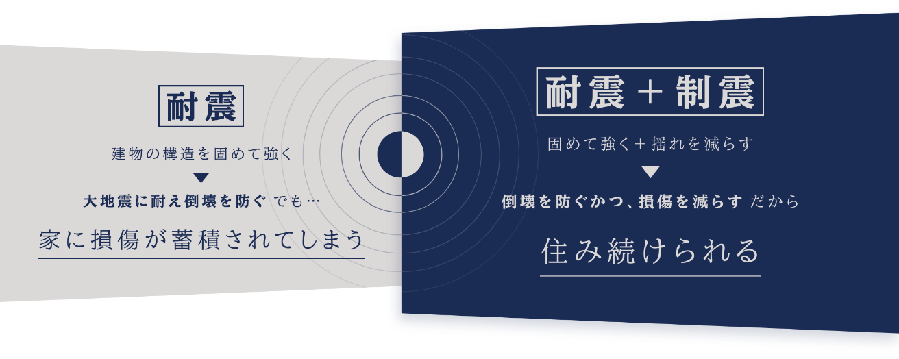 地震に強いテクノストラクチャー工法をベースに、建物の構造を固めて強くする「剛」というアプローチと、